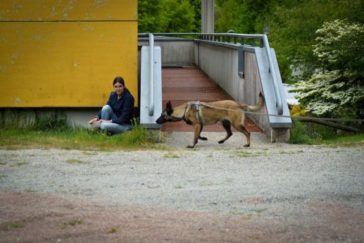 Depuis chez vous, vous devrez être plusieurs personnes : une qui va participer avec le chien et l'autre qui ira se cacher. Vous pourrez échanger les rôles sans problèmes.
